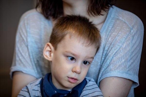 Весь наш разговор Леша сидит у мамы на руках. Примерно каждые пять-десять минут Наташа меняет его положение: то прижмет к себе, то усадит на колени, то положит на живот и гладит спину. Леши спастический тетрапарез, поражены обе руки и ноги, проблемы со зрением, симптоматическая эпилепсия.