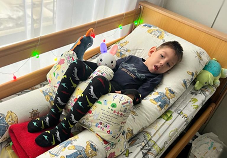 Мальчик не говорит, но находит способы выразить благодарность — например, мычит после еды, словно произносит тихое «спасибо». Он не освоил базовые движения: не может перевернуться или удержать голову. Зато научился фокусировать взгляд — и для семьи это настоящее событие, маленькая победа, наполненная огромным смыслом.